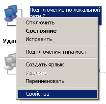 Теперь займемся настройкой локальной сети. Итак на каждом компьютере (по очереди) заходим в сетевые подключения, нажимаем правой кнопкой мыши по значку подключение локальной сети и заходим в Свойства (Рис. 7.3.).
