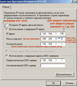 Выбираем пункт использовать следующий IP-адрес. Прописываем IP адрес компьютера. Если настраеваемая вами локальная сеть никуда больше не подключается (не является подсетью) то обычно прописываем следующие IP-адреса 192.168.1.(от 2 до 255 для каждого компьютера уникальный). Адрес 192.168.1.1 мы не трогаем т.к. его зарезервируем для подключения в сеть ADSL-модема в режиме роутер для возможности выхода в интернет с каждого компьютера подключенного в локальную сеть. Маска подсети у нас будет одинаковая 255.255.255.0. Она проставляется автоматически.